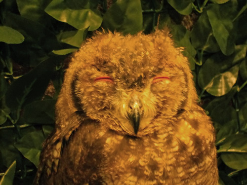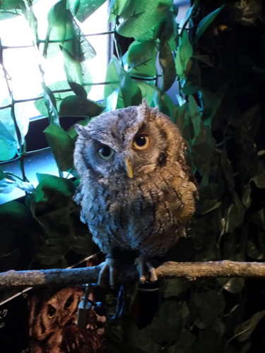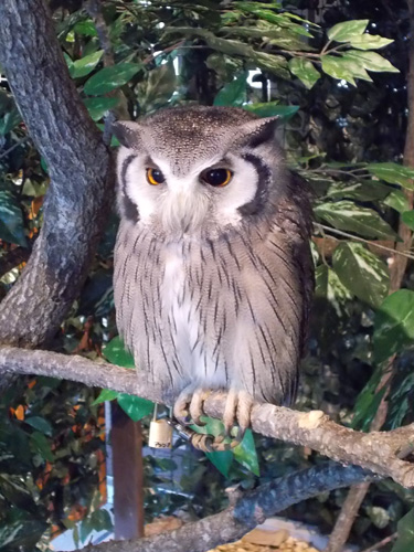 アフリカオオコノハズクの コノハ博士 烏丸さん。びっくりすると細くなっちゃう子。