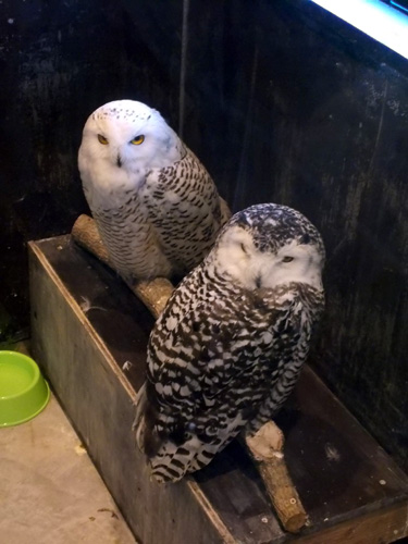 ハリポタで有名なシロフクロウの一条さん(上)と二条さん(下)。なぜかこの子たちとはガラス越しの対面です。