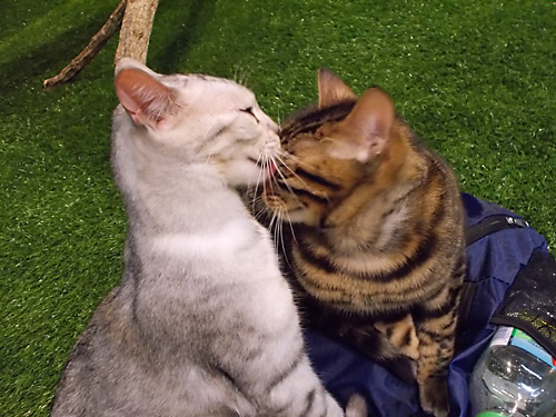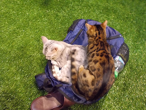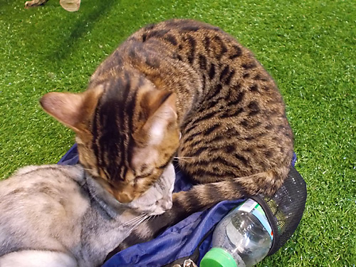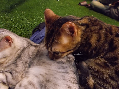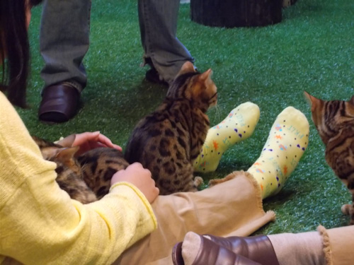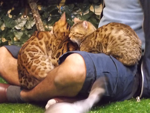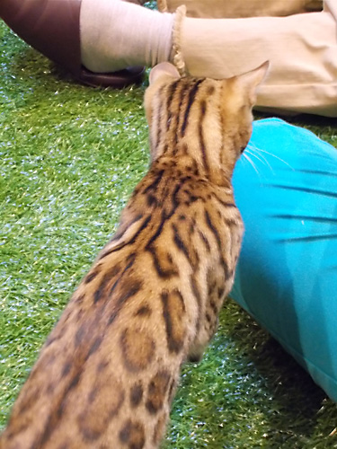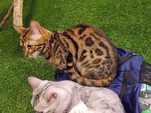 どの子も元気いっぱいですが、ベンガルは生来が温厚な性格なのだそうで、客に対して特別愛想が良いわけではないけど、悪さや邪険にするような子もいないという感じでしたね。