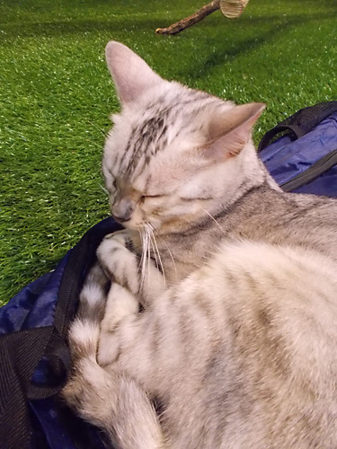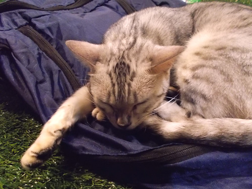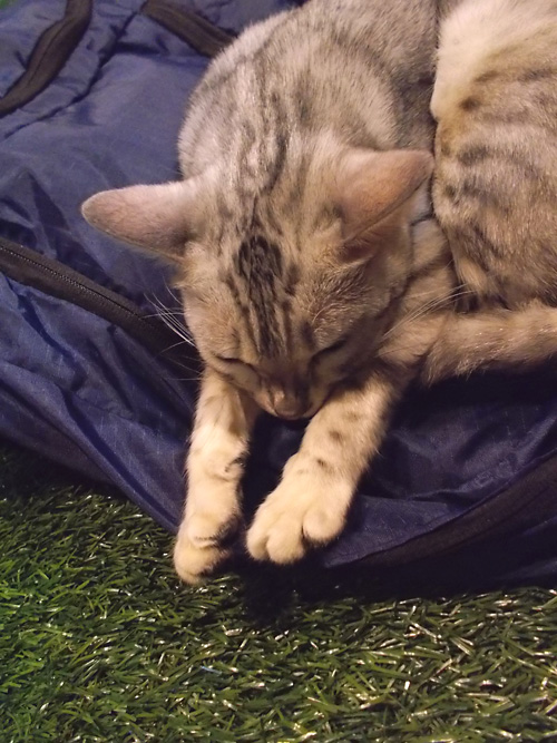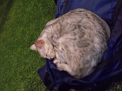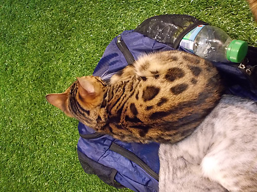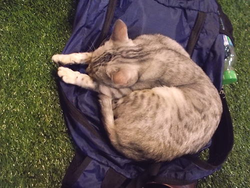 そんな中、リュックベッドにすっかり落ち着いてしまったこの子。