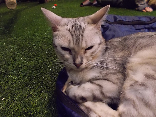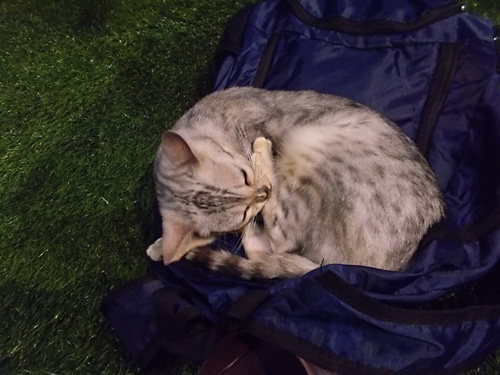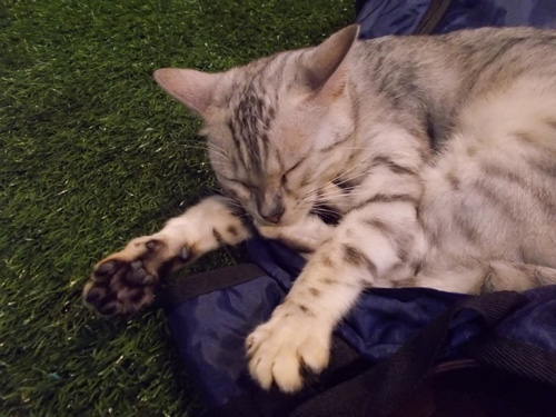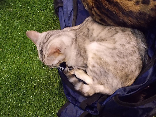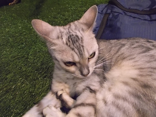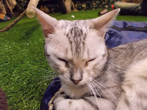 このお店にはシルバーのベンガルは2匹いるそうで、この子の名前は 伏見ちゃん だそうです。(退出時に教えてもらいました。)