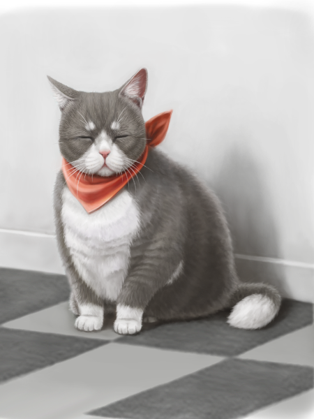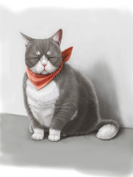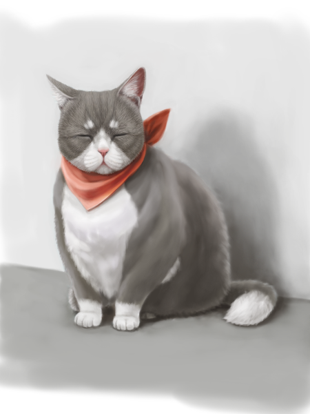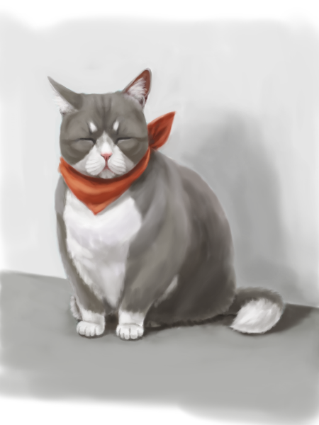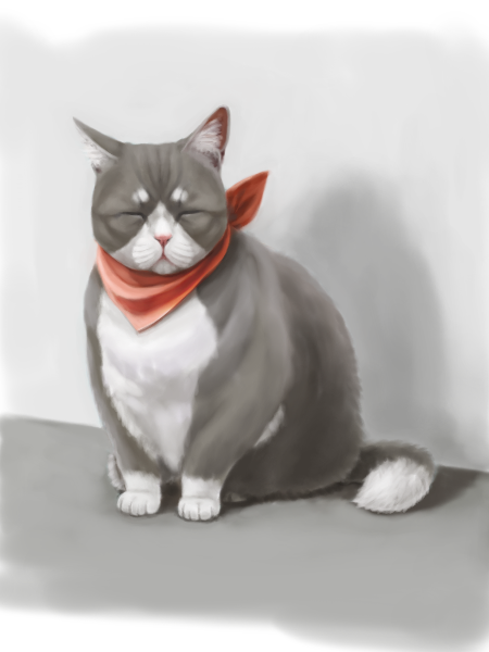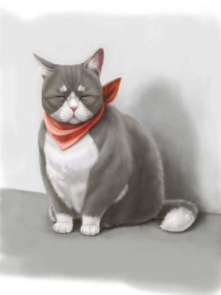 猫よりスカーフの質感を出すのに苦労してしまいました。