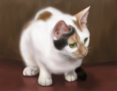 予想はしていたが、黒猫を描くのは難しい。猫の形に黒く塗りつぶして猫目を描けば黒猫と認識はされるだろうが、自分としては黒猫の、モフモフというのともまた違う、ビロードのようなしゅるしゅるっとした感触をも表現したい。