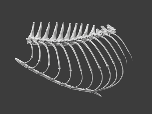 ただ、胸骨に接続していない浮動肋骨の先端にも肋軟骨のようなものがちょっと伸びているのが確認できるのですが、これが何のためにあるのかがよくわかりません。